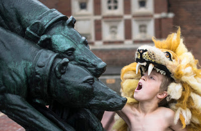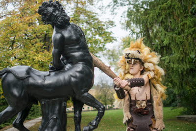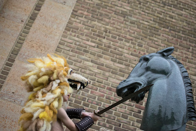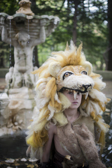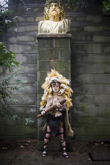 He says he wants to be Hercules for Halloween, so I say let's start the lionskin. Lots of heroes wore lionskins, I tell him. Samson wrestled a lion with his bare hands. Gilgamesh killed lots of lions with his friend Enkidu and when Enkidu died he said, "I will grow my hair long for your sake, and wander the wilderness in the skin of a lion." Lionskins and long hair, those are things for heroes, I say. But Hercules, now there's the best hero of all. We have James Riordan's retelling of the Twelve Labors and he is old enough to read them himself now, but we still read them together. He likes this version because unlike on all those pots at the museum, that Hercules wears something to cover his you-know-what. Don't worry, I say. We'll make something to cover your you-know-what.