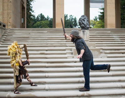 Did I mention the club? Hercules used a club instead of a sword most of the time. His was probably olive wood but just bring me any log you find and we'll make it into a club. I need to put this hipster axe to use, bub.
